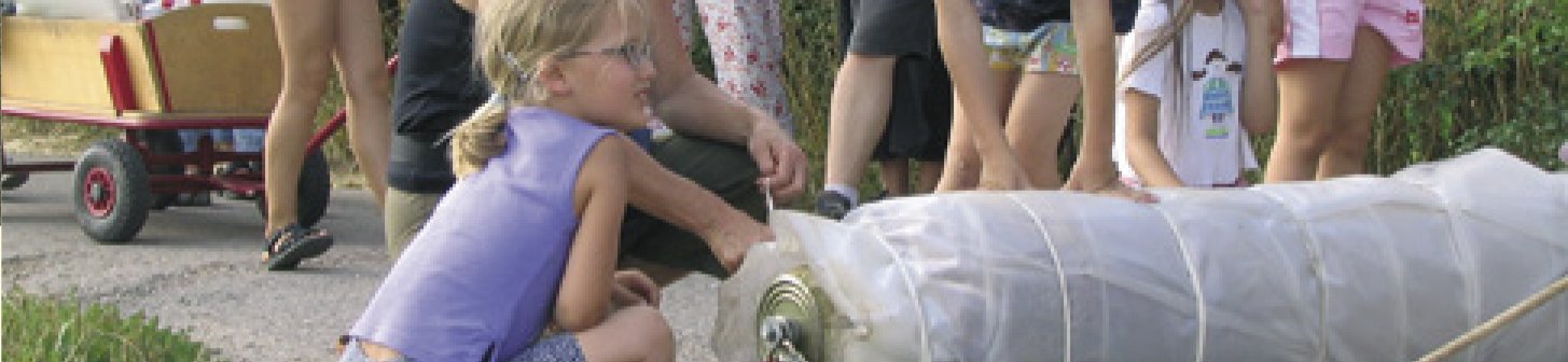 Die Kinder waren von der Idee begeistert, ihren mit bunter Alpenwolle gestalteten Wandteppich nach „Kirgisen-Art“ zu filzen. Das Pferd wurde eingespannt und los ging es auf eine acht Kilometer lange „Prozession“ über die Feldwege bei Holzgerlingen. Auf dem Foto links hinter dem Pferd und der Teppichrolle gehen die „Techniker“ Klaus Behringer und sein Sohn. Ein alter Telegrafenmast dient als Roll-Kern.