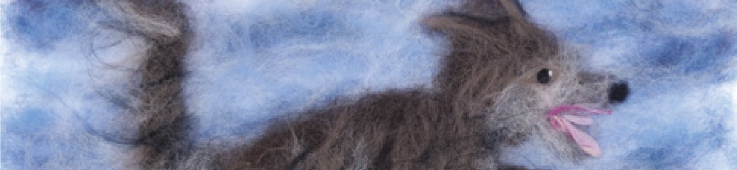 Das Bild „Hund springt über Pfütze“ hat die 10-jährige Lea Schölf mit Wolle so ausdruckstark gelegt, dass das Tempo in jedem Haarbüschel und durch den offenen Mund und die herausgestreckte Zunge sichtbar wird.